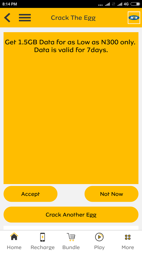 Note: You can only get these amazing deals from the default MyMTN app. Not available using USSD code.